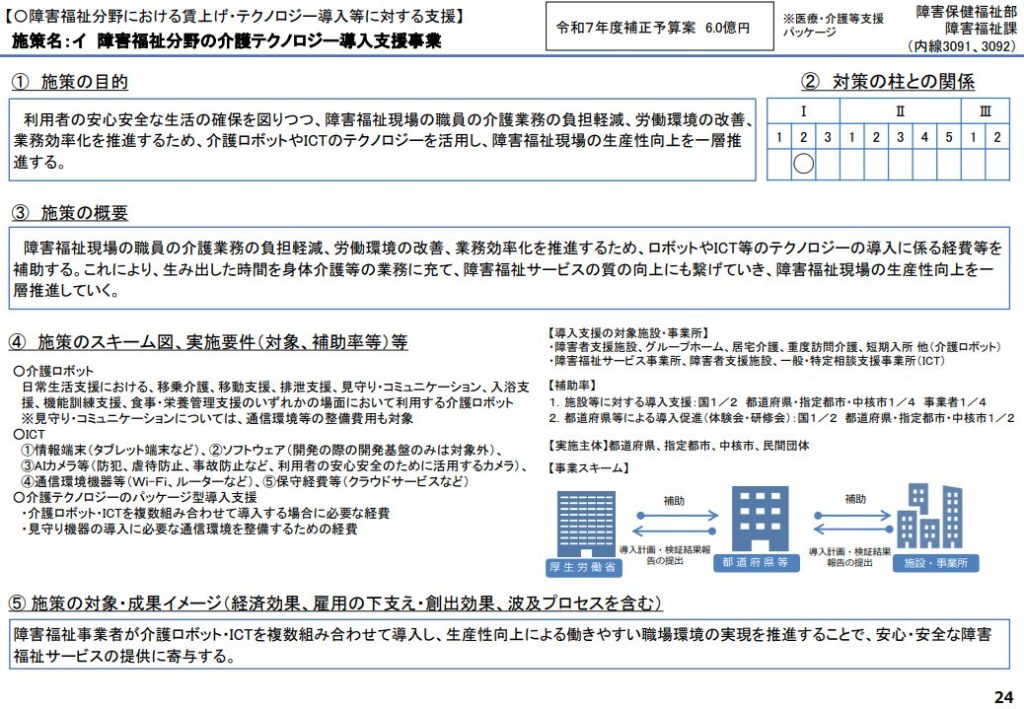 【障害福祉】令和7年度補正予算案:生産性向上とロボット導入支援の動向について